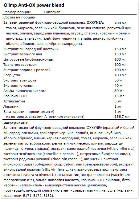 Склад Anti-OX Power Blend Olimpна порція (1 капсула):