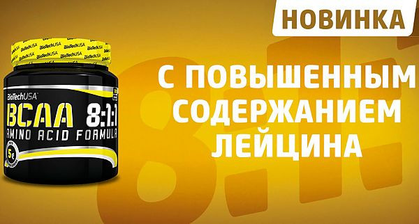 BCAA 8:1:1 BioTech — незамінні амінокислоти BCAA (лейцин. ізолейцин і валін) у чистому вигляді та в співвідношенні 8:1:1, дуже якісний продукт від кампанії BioTech, — будівельний матеріал для м'язової структури, тканин, внутрішніх органів і зв'язок.